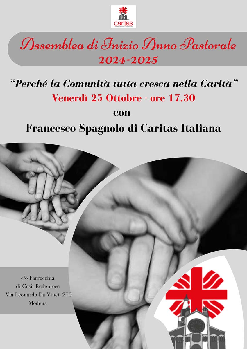 Presso la parrocchia di Gesù Redentore a Modena, lo scorso 25 ottobre, si sono incontrati oltre 50 volontari provenienti dalle caritas parrocchiali della diocesi, per interrogarsi sul senso e lo stile dell’animazione alla carità nei propri territori e parrocchie. Relatore dell’incontro Francesco Spagnolo, del settore animazione della Caritas Italiana, con la partecipazione del Vicario Generale Mons. Giuliano Gazzetti, del Direttore della Caritas Diocesana, Eros Benassi e della Vicedirettrice Maria Rita Fontana, responsabile del Laboratorio di Animazione e Formazione delle Caritas parrocchiali, con il quale è stato promosso l’incontro.